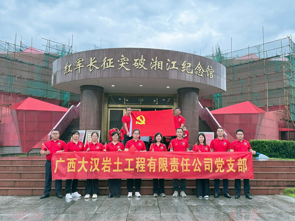 2024年7月1日廣西大漢巖土工程有限責(zé)任公司組織公司全體員工前往桂林市興安縣“紅軍長(zhǎng)征突破湘江烈士紀(jì)念碑園”開展七一主題黨日活動(dòng)。緬懷先烈,重溫黨的光輝歷程和優(yōu)良傳統(tǒng),進(jìn)一步增強(qiáng)公司的凝聚力和戰(zhàn)斗力,營(yíng)造頌黨、敬黨、愛黨的濃厚氛圍。